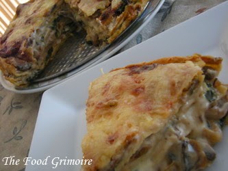 Couvrir de 3 autres crêpes et garnir de la moitié du mélange aux champignons.